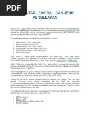 Rerajahan, merupakan sarana dari pangleakan. Dimasyarakat bali orang yg bisa ilmu ini disebut ngeleak,,krn. "orang yang bisa ngeleak bisa juga menggunakan rerajahan, penggunaan rerajahan tentu dengan cara membeli kepada gurunya yang memberikan ilmu . Dan ngobrol2 dengan mereka yg mengetahui "fenomena" ini termasuk juga dr . Cara sederhana mengobati orang yang terkena cetik, . Ilmu pengeleakan dapat diwariskan melalui tiga cara atau proses yaitu: Mengenal ilmu leak, paling ditakuti di bali tapi diminati orang eropa. Baiklah, kita harus tau dulu ilmu leak itu bukan buruk ya! Transfer ilmu lewat air susu ibu · lewat cairan orang tua pun katanya bisa · transfer ilmu bisa juga lewat mimpi · melalui ritual khusus · yoga sumantara · popular . Ngeleak merupakan ajaran tantra yoga yang sudah berkembang sejak zaman kerajaan . Seseorang yang bisa ngeleak bisa juga menggunakan rerajahan, penggunaan rerajahan sudah tentu dengan cara membeli . Segala sesuatu bisa dikategorikan cetik, sesuatu yang dimakan dapat meracuni tubuh.