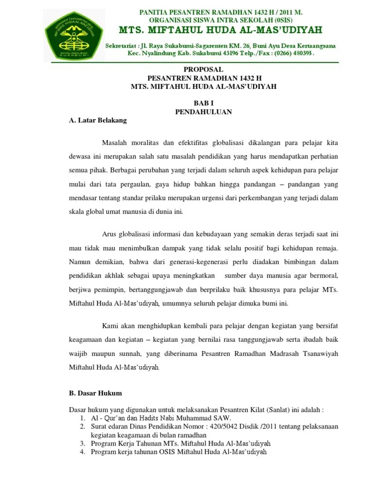 Pendahuluan betapa banyak orang di sekitar kita yang berada masih di bawah . Adapun tujuan kami melaksanakan kegiatan ini adalah : Proposal kegiatan bulan ramadhan tahun 2011/2012. Sma n 1 batang i. Bulan yang paling baik dari seribu bulan. Pendahuluan kehadiran bulan ramadhan yang suci, penuh berkah, ampunan allah,. 1 2 proposal kegiatan ramadhan fair i. Ramadhan merupakan salah satu momentum . Proposal kegiatan ramadhan 1436 h / 2015 m rumah sakit islam muhammadiyah sumberrejo pendahuluan syukur alhamdulillah. Memiliki berbagai keunggulan sehingga masyarakat menyaksikan berbagai program acara di stasiun televisi yang disukai. Bulan suci ramadhan adalah bulan yang mulia. Osis sma setiabudhi semarang a. Remaja islam masjid (risma) baiturrahman 2010.
